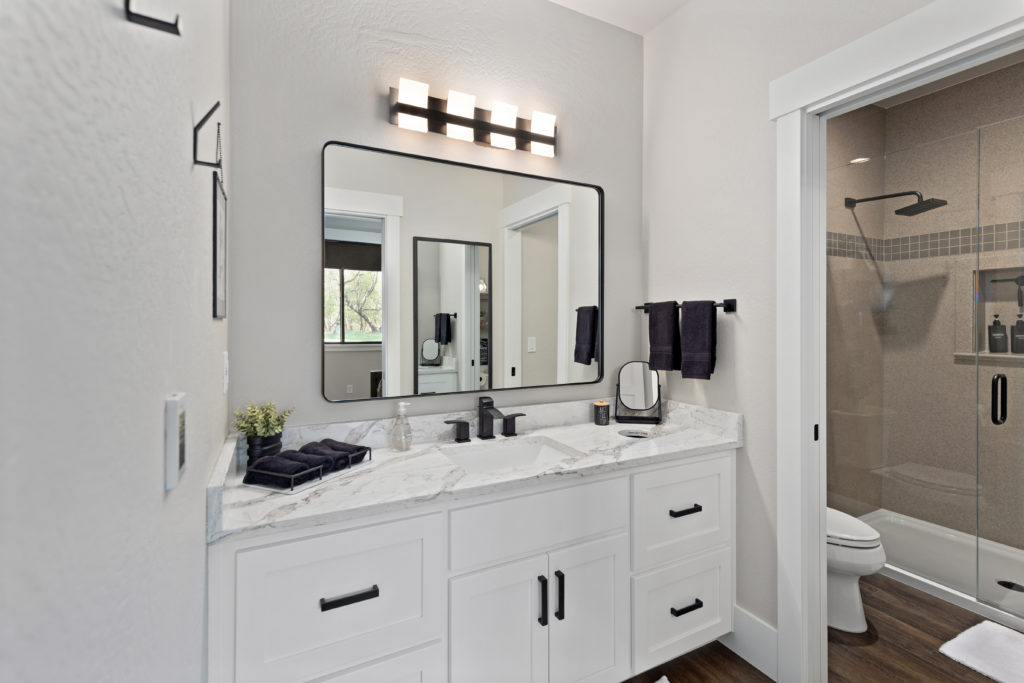 From the moment you step inside, you’ll be captivated by our clean, modern design and soaring ceilings that set the tone for this extraordinary home. The downstairs bedroom design ensures lots of privacy downstairs (and celebrations upstairs), while large windows flood each bedroom with natural light, highlighting the exquisite craftsmanship and high-end finishes throughout. Convenient amenities can be found in the center area, including full washer/dryer, and a small office space with printer.