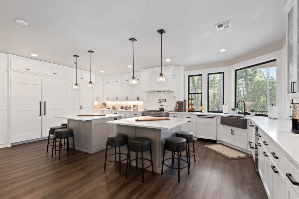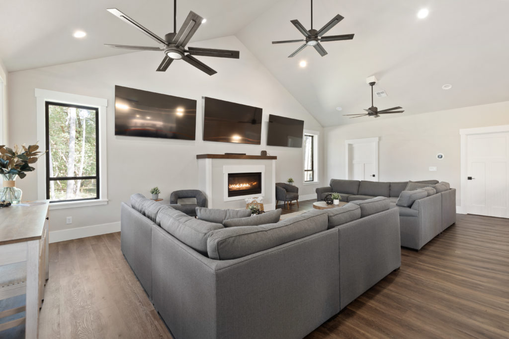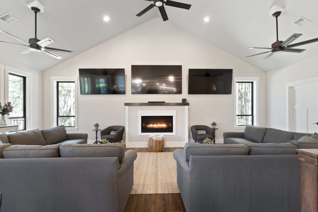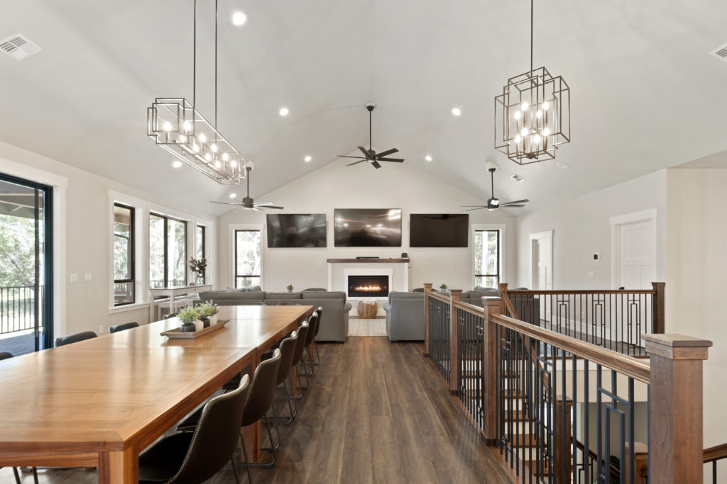 The heart of this home is the open-concept great room, which effortlessly combines a family room, formal dining area, and entertainment space. With plenty of seating (up to thirty!), a cozy fireplace, and a large dining table, this area is perfect for: